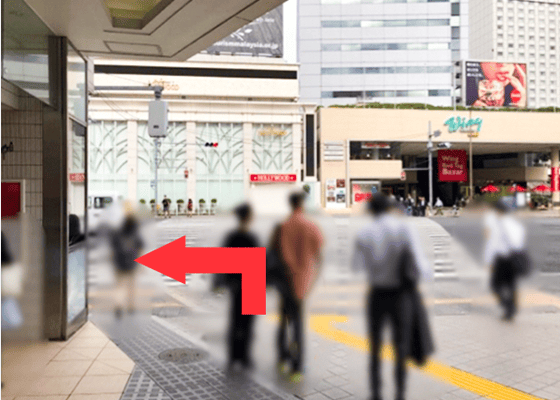 ③大きな横断歩道にでます。こちらを渡らずに左折してください。